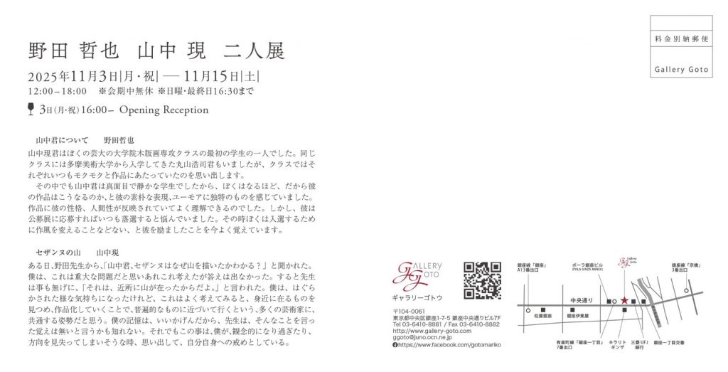 野田哲也・山中現 二人展11月3日 (月) ~ 11月15日 (土)